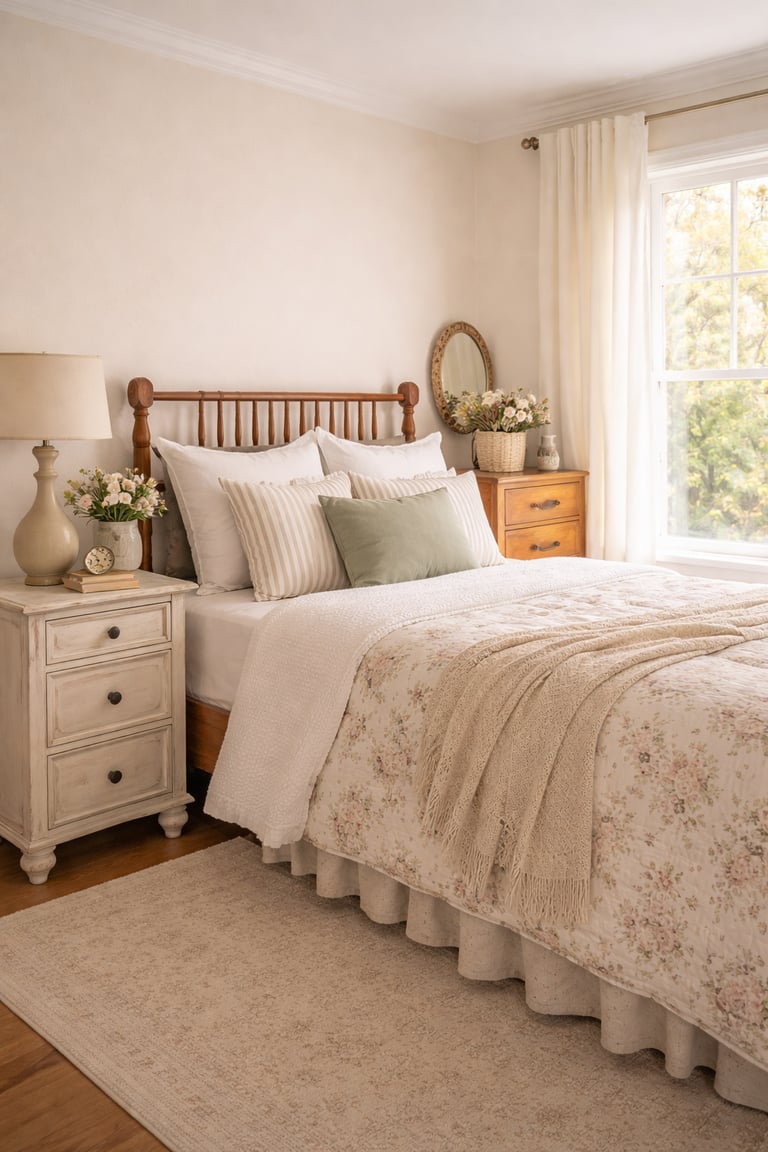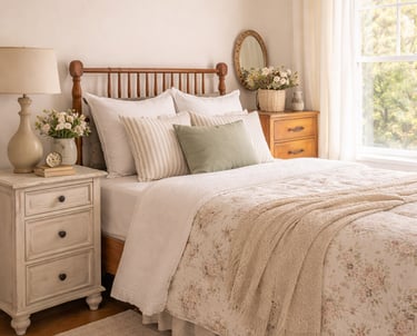 Creating a cozy cottage bedroom doesn’t have to be expensive. In fact, some of the most beautiful cottage-style spaces are built with simple, affordable pieces that feel collected over time.