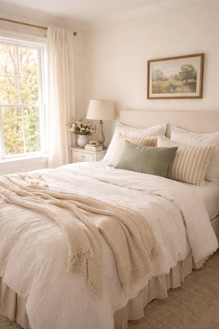 These colors help reflect light and make your space feel airy and peaceful while still keeping that cozy cottage feel.
