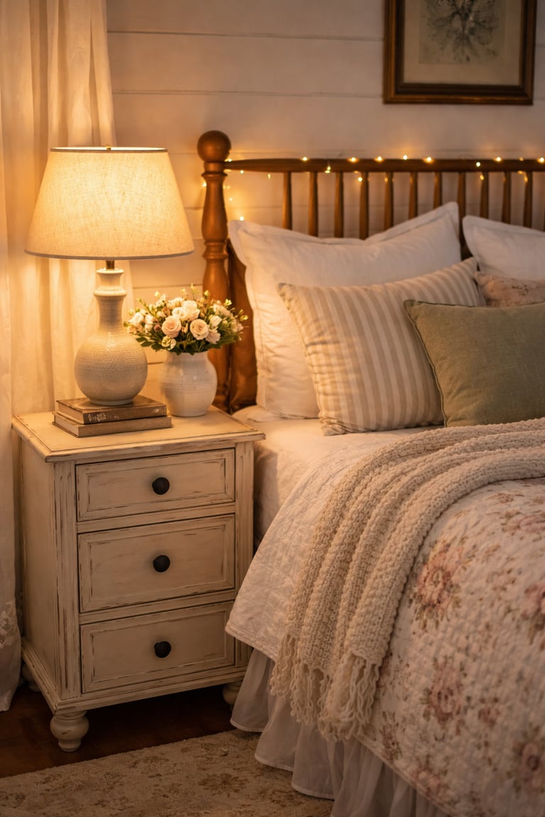 With a few thoughtful touches—like soft textiles, vintage finds, and warm lighting—you can turn any bedroom into a charming retreat without spending a lot.