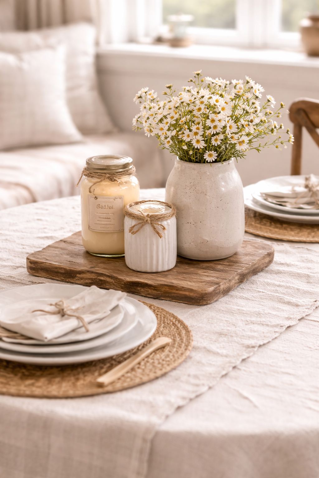 A few carefully chosen pieces can make a big impact. Keep styling minimal with items like a ceramic vase, fresh flowers, or a candle.