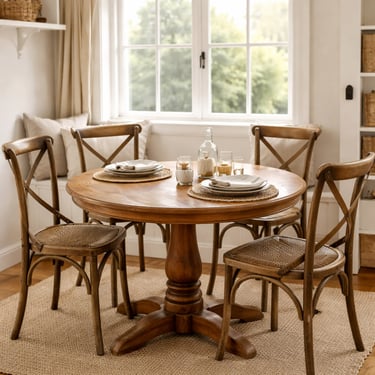 A round table helps soften the overall look of your nook and encourages a more intimate, relaxed setting.