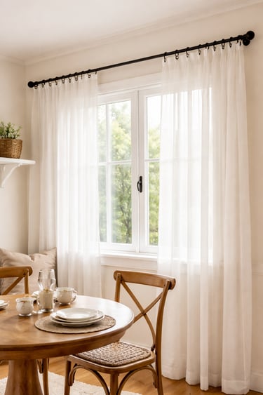 Sheer curtains are a perfect addition, offering privacy while maintaining a light and airy look.